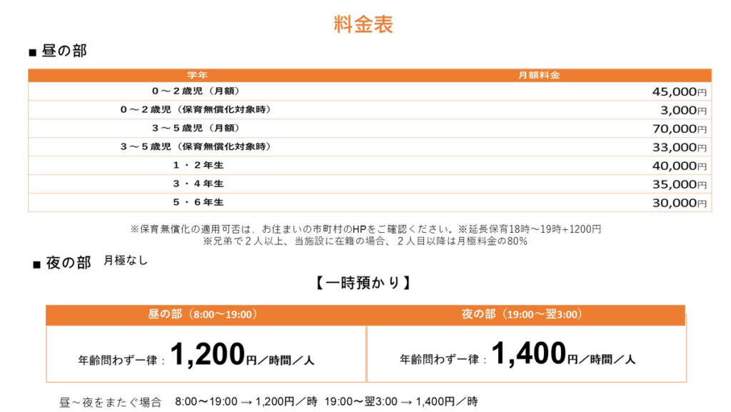 担当スタッフが施設内をご案内し、保育方針・1日の流れ・持ち物・料金などについてご説明します。ご不明点はお気軽にご相談ください。